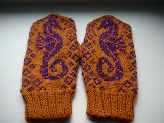 A po tej kruszonkowej rozpuście mogę pochwalić się konikami: ładna z nich para, ale prawą rękawiczkę zrobiłam jakby ciut ciaśniej. Nie wiem, jak to wytłumaczyć: na szerokośc jest taka sama, ale wyszła... minimalnie krótsza. Nie widac, ale ja o tym wiem :(